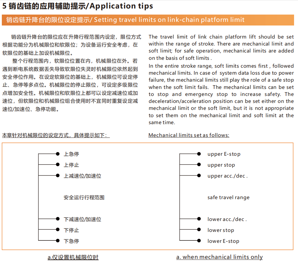 > 拼搏(中国)刚性链升降台的限位设定提示