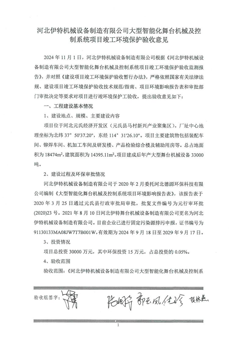 根据《国院关于改<建设项目环保护管理条例>的决定》(国务院令第682号)以及生态环境部《建设项目竣工环境保护验收暂行办法》和河北省环境保护厅《建设项目环境影响评价文件审批及建设单位自主开展环境保护设施验收工作指引(试行)的通知》(冀环办字[2017]727号)有关要求,现将拼搏足球体育《拼搏足球体育大型智能化舞台机械及控制系统项目竣工环境保护验收监测报告)公示如下: