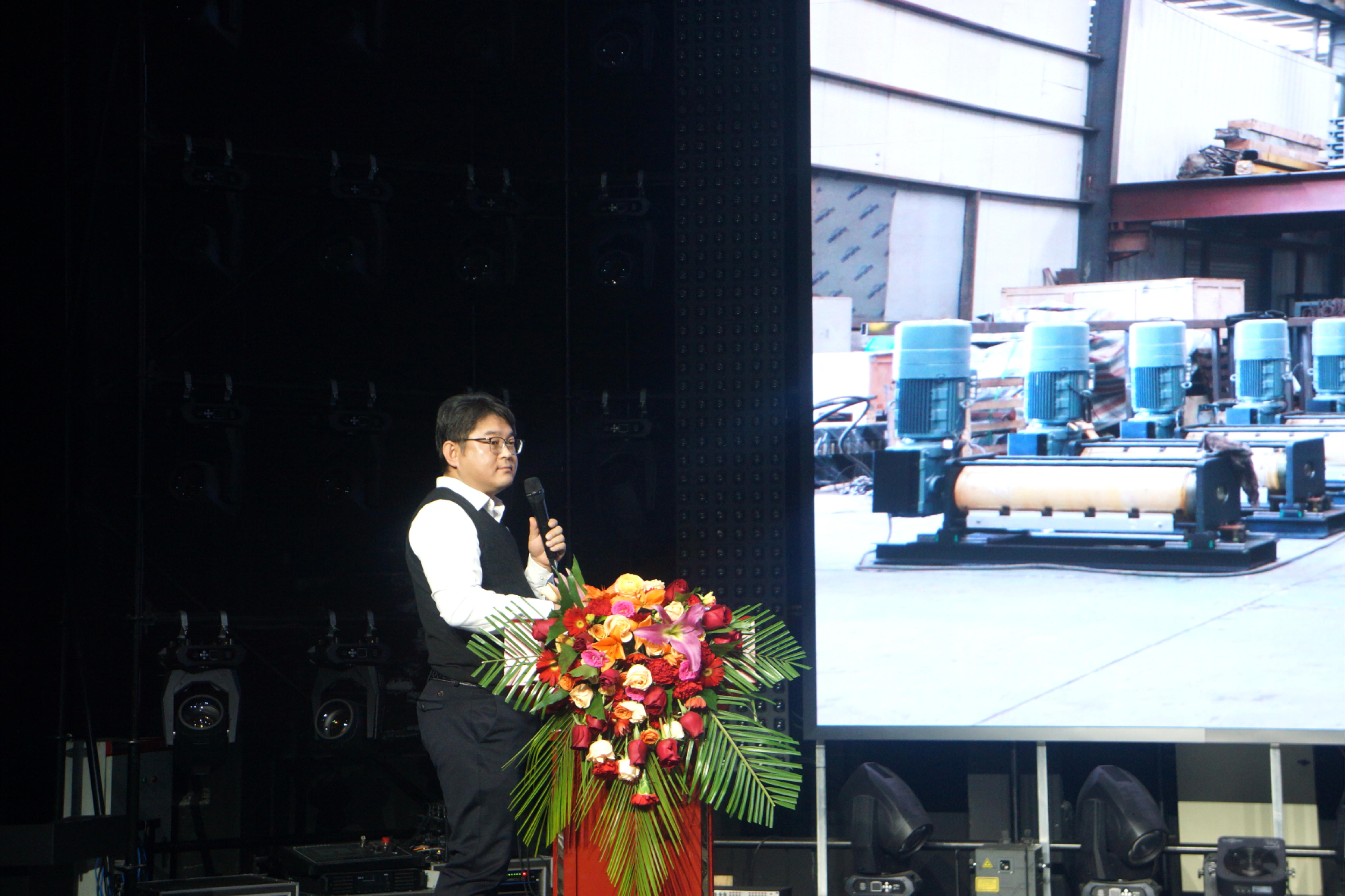 南正一指出,拼搏(中国)公司专注于高品质演艺设备的研发和制造,致力于为客户提供创新的解决方案。他详细介绍了公司的核心产品,拼搏(中国)先进的舞台机械设备包括刚性链,升降台,卷扬机,大幕机,智能全向车等,这些产品在多个领域得到了广泛应用,如大剧院、歌剧院、演唱会、移动演出、艺术中心等。他强调,拼搏(中国)公司始终坚持技术创新与市场导向,努力满足客户日益增长的需求。